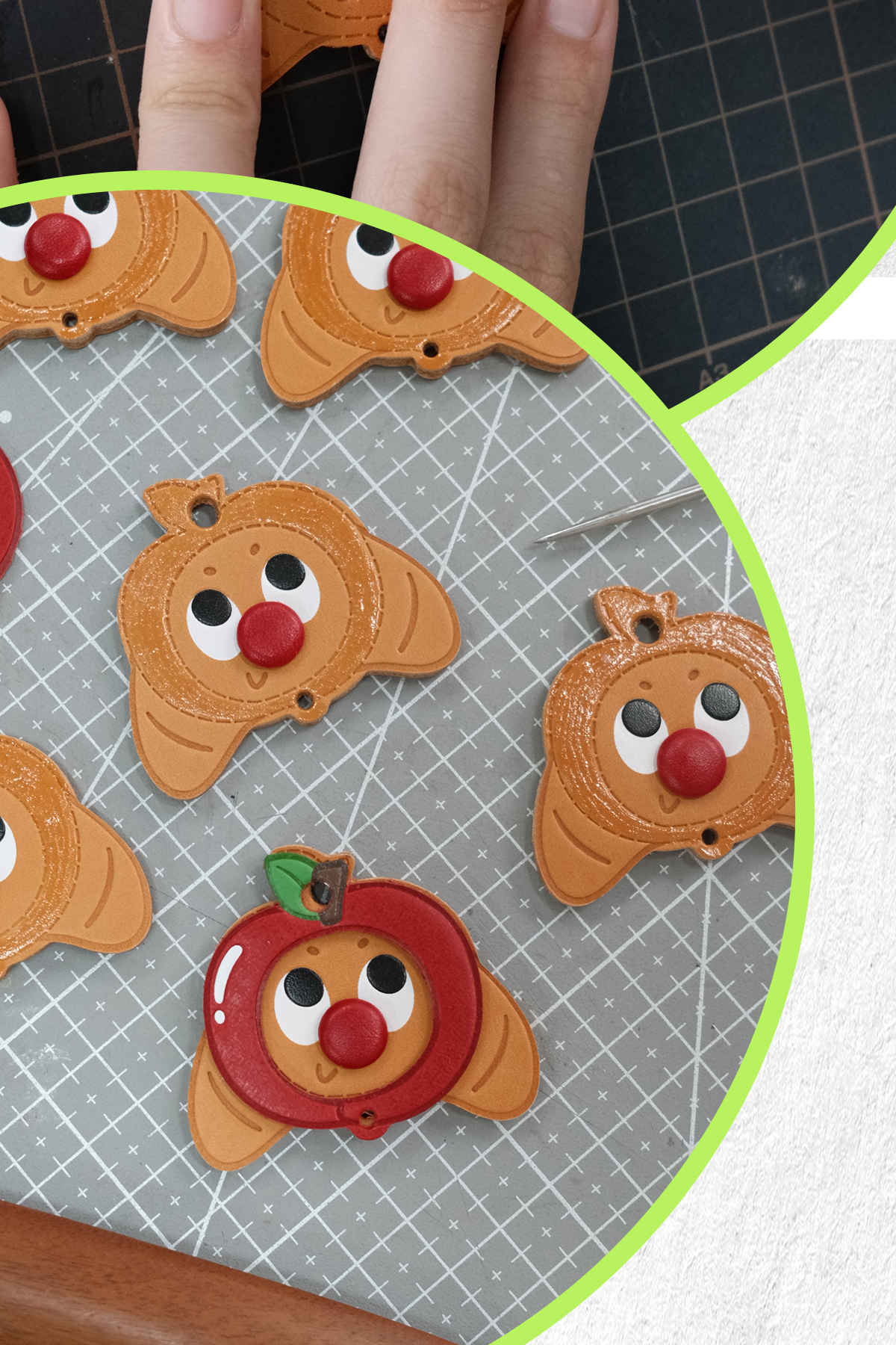 Fingerstudio Apple Bread Pendant Croissant Toast Leather Pendant