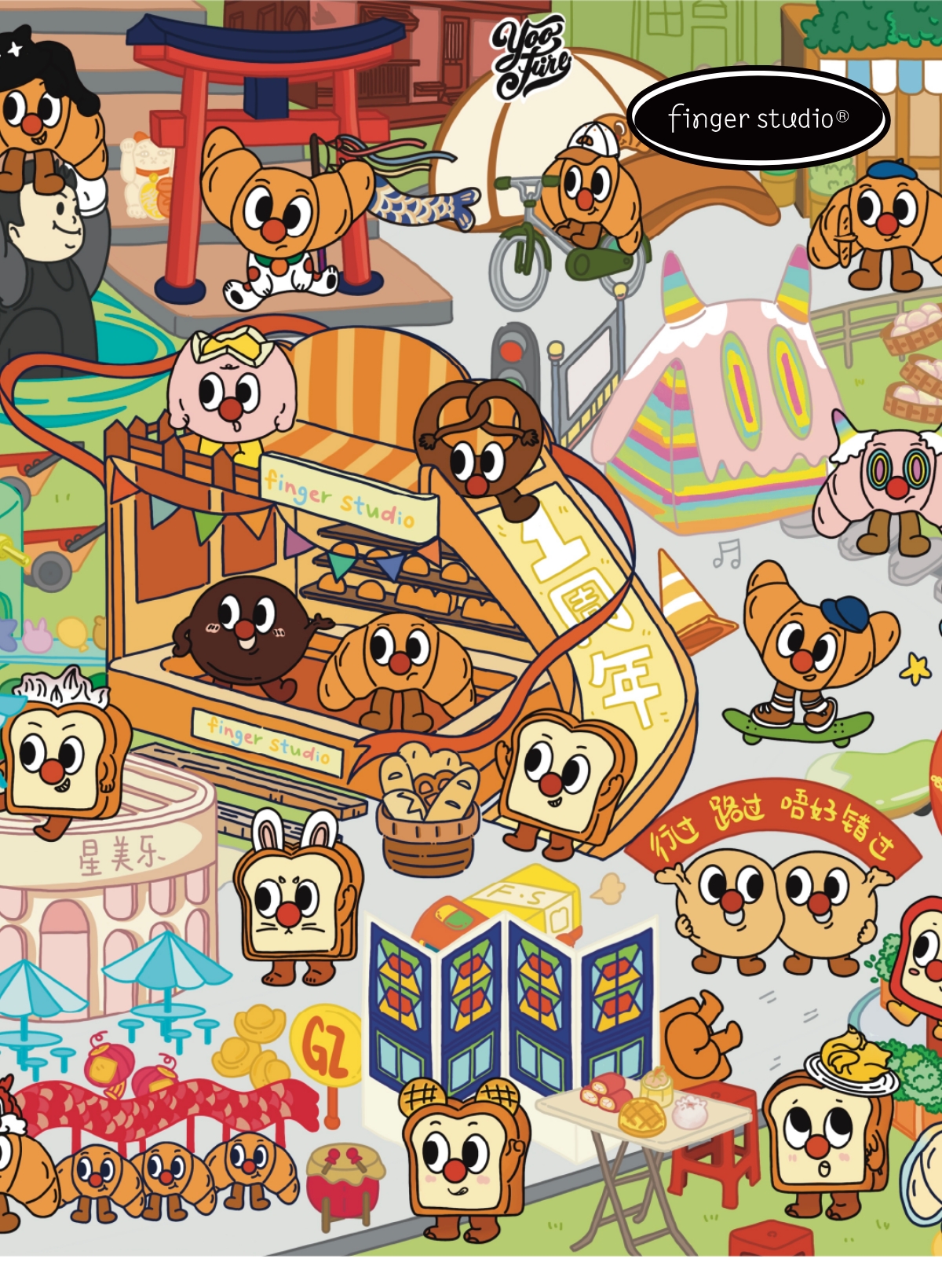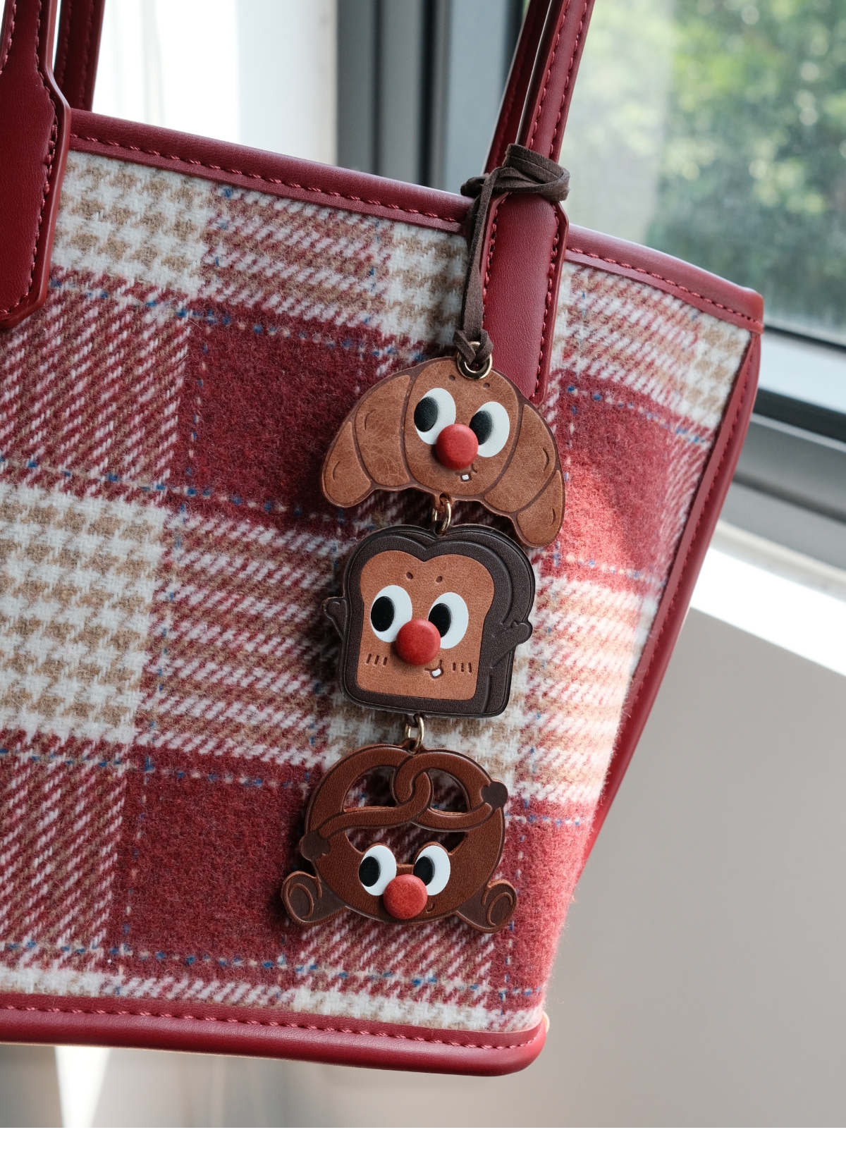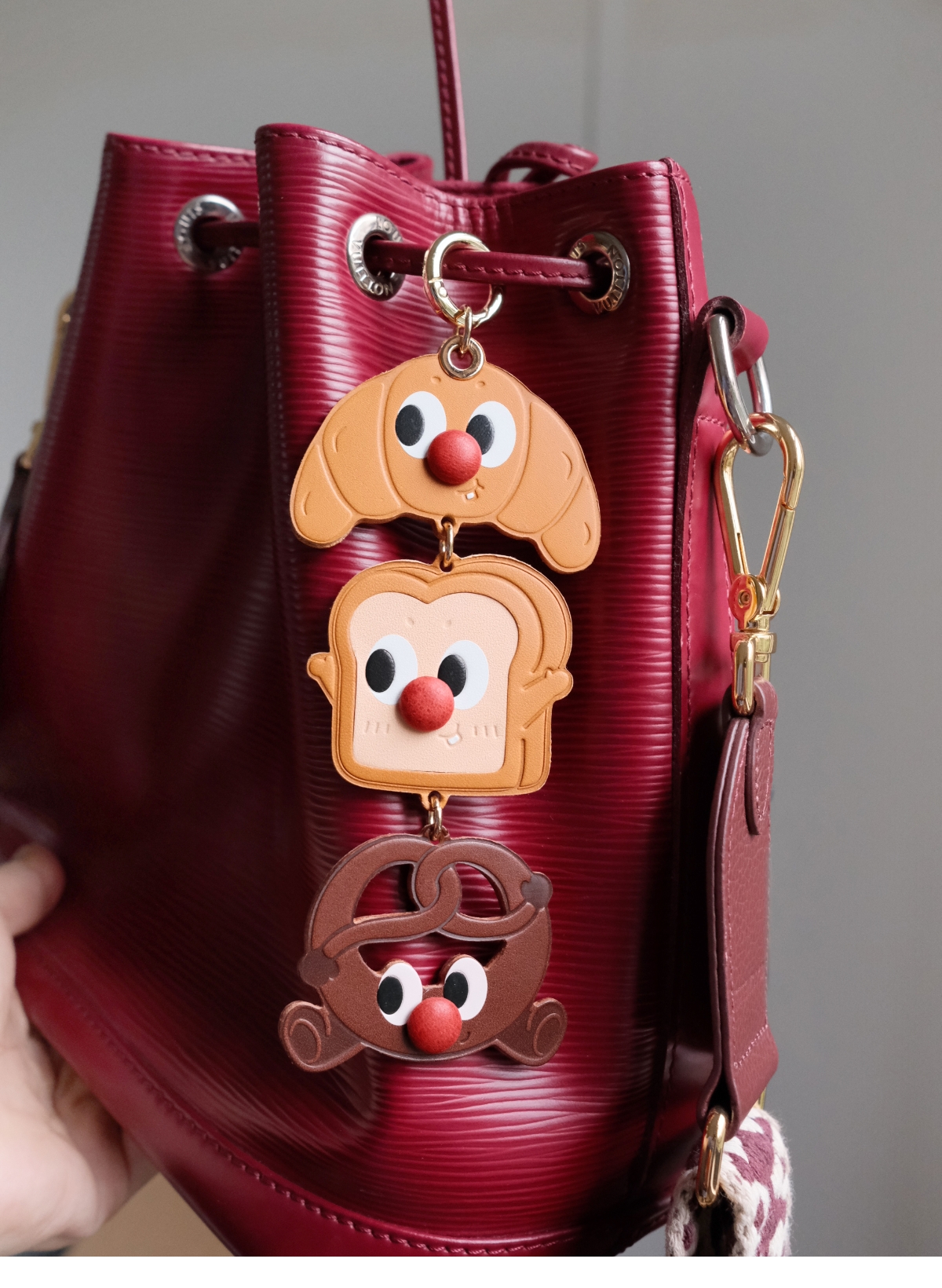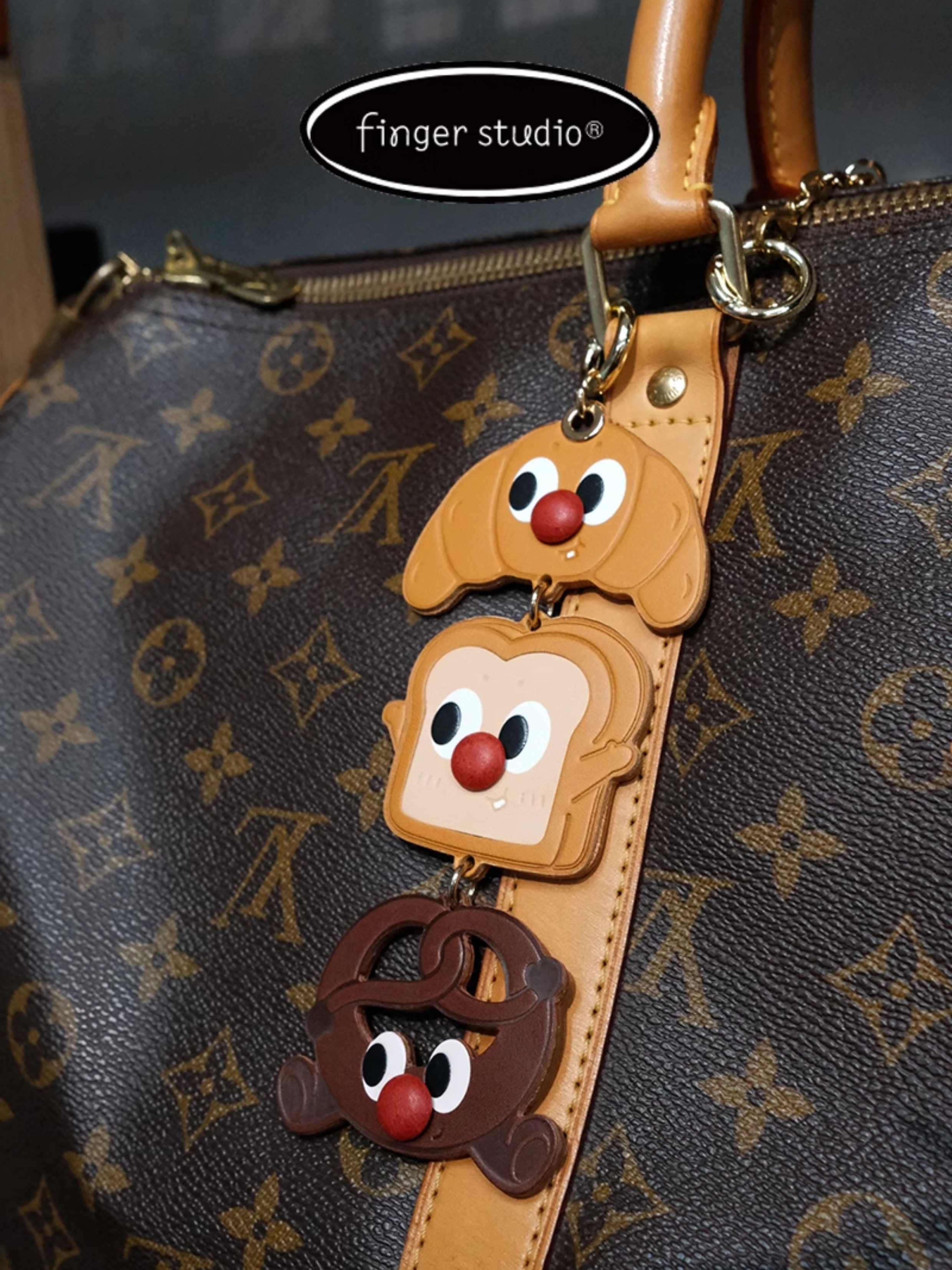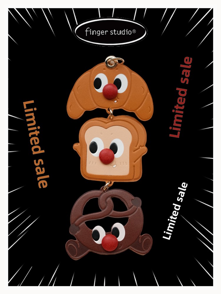 Fingerstudio Clown Bread Pendant Croissant Toast Doll Leather Bag Pendant