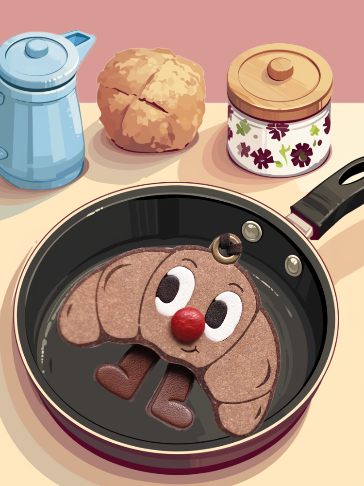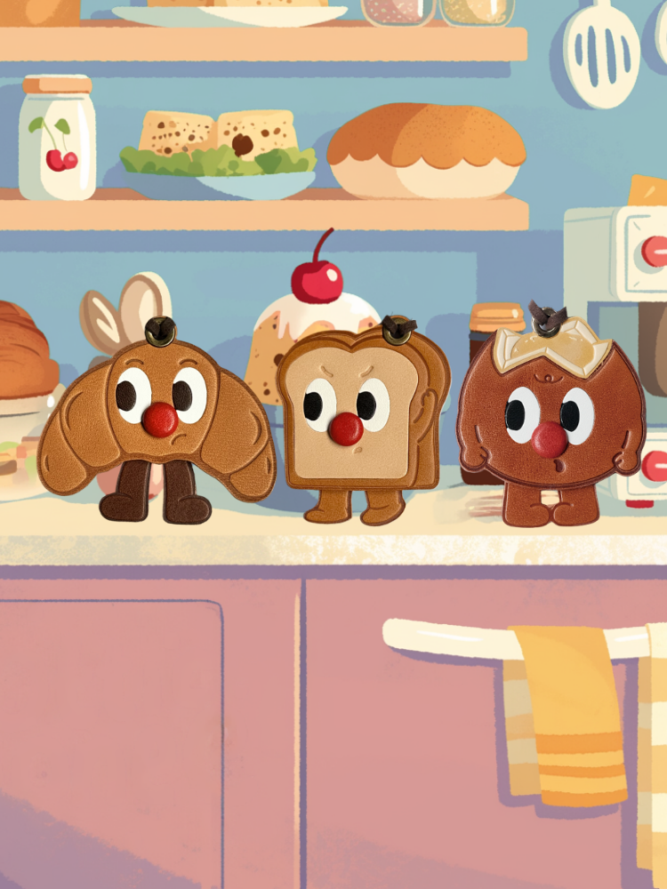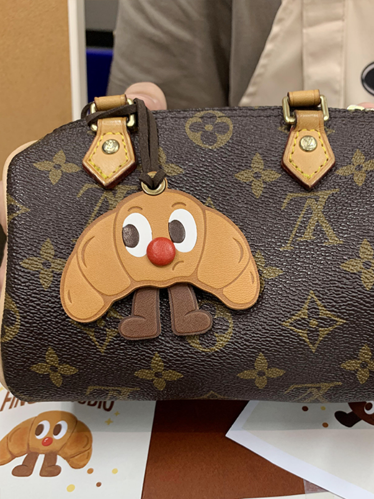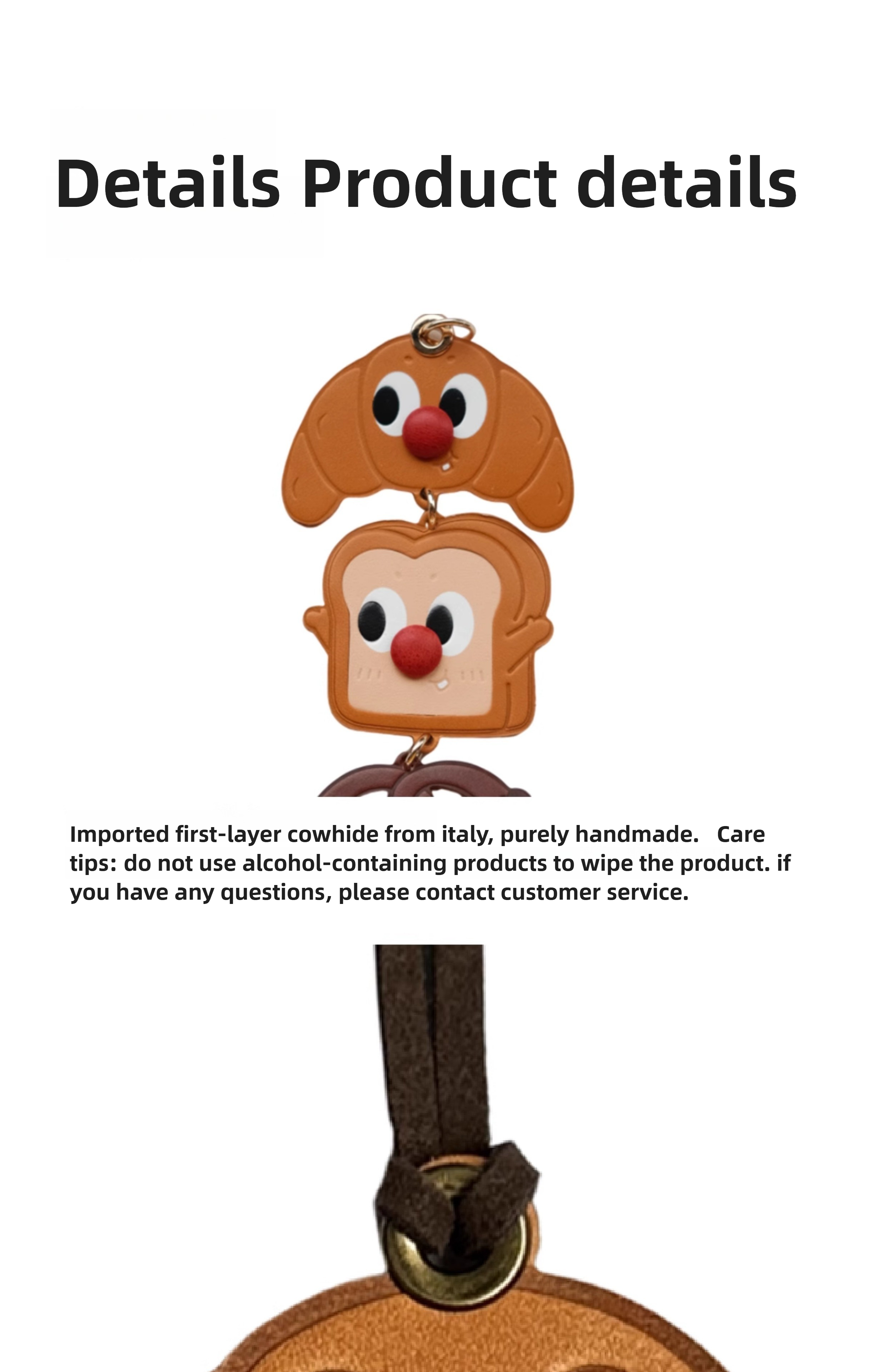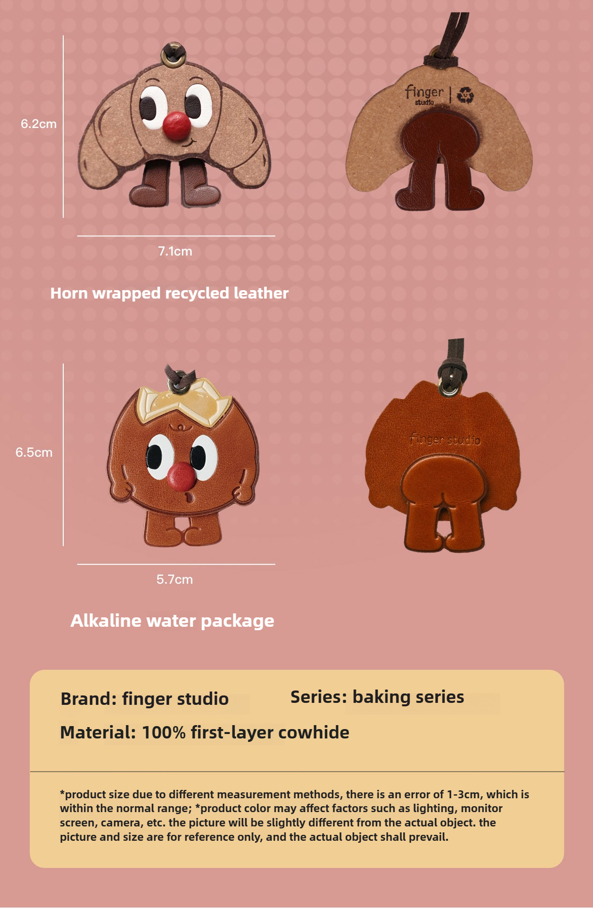 Fingerstudio Classic Croissant Toast Bread Pendant Cowhide Leather